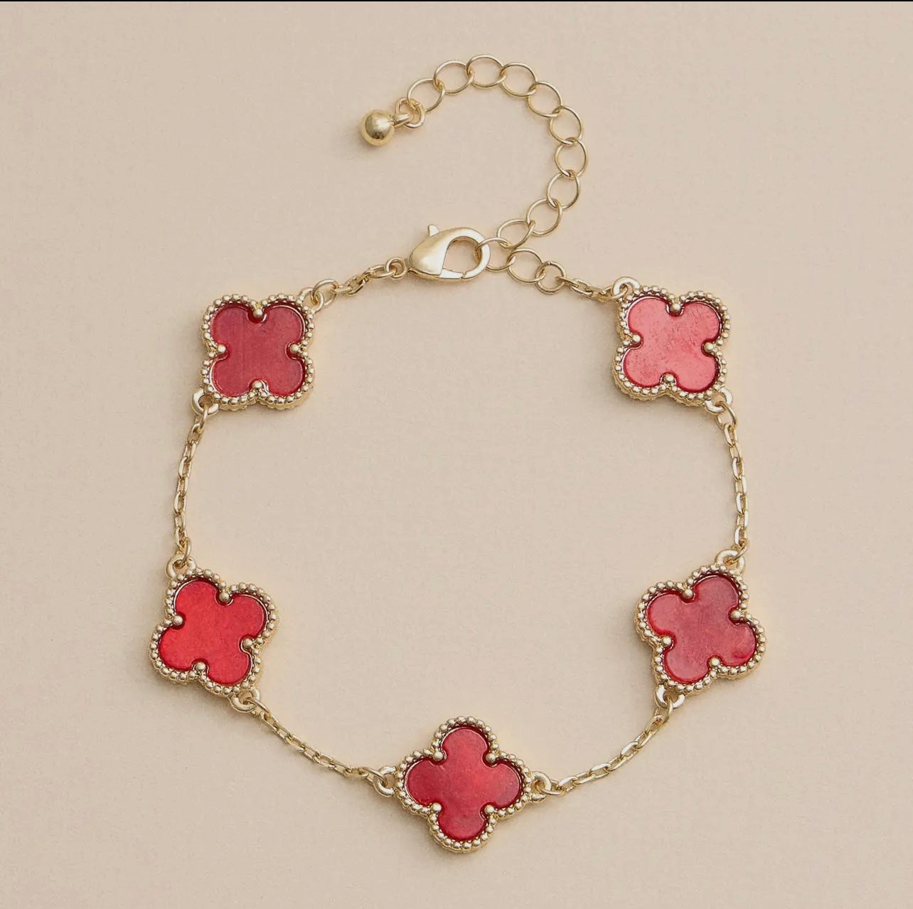 Add a touch of luck to your wardrobe with our Beaded Clover Bracelet! Available in four vibrant colors on a gold-plated chain, this fashion bracelet is sure to bring some charm to any outfit. (Pun intended!)
